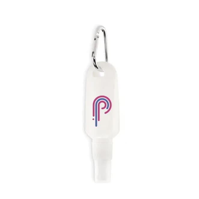Spray przeciwsłoneczny SPF25 z karabińczykiem. Pojemność: 30 ml.