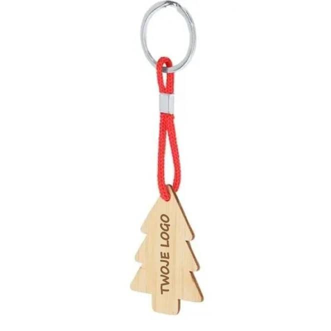 Bambusowy brelok do kluczy, świąteczny motyw Choinka z nadrukiem logo