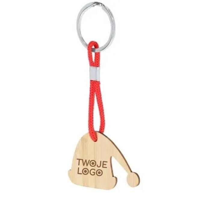 Bambusowy brelok do kluczy, świąteczny motyw Czapka mikołaja z naniesieniem logo
