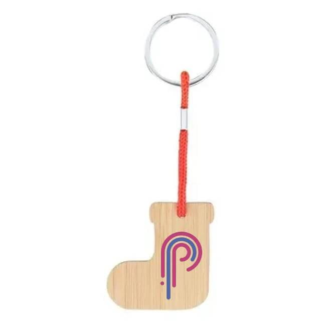 Bambusowy brelok do kluczy, świąteczny motyw Skarpeta z nadrukiem na zamówienie Zdjęcie