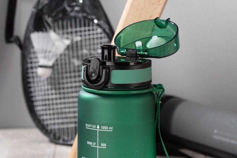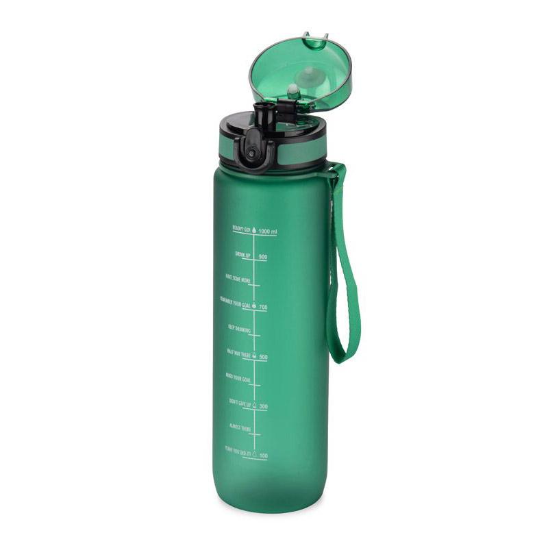 Bidon motywacyjny MOTIVA posiada pojemność aż 1000 ml, dzięki czemu możemy mieć dużą ilość płynu pod ręką. Na ściance butelki nadrukowana jest miarka motywująca w języku angielskim. Korzystając z tej butelki możemy dokładnie monitorować ilość wypitej wody. Sięganie po wodę staje się frajdą.