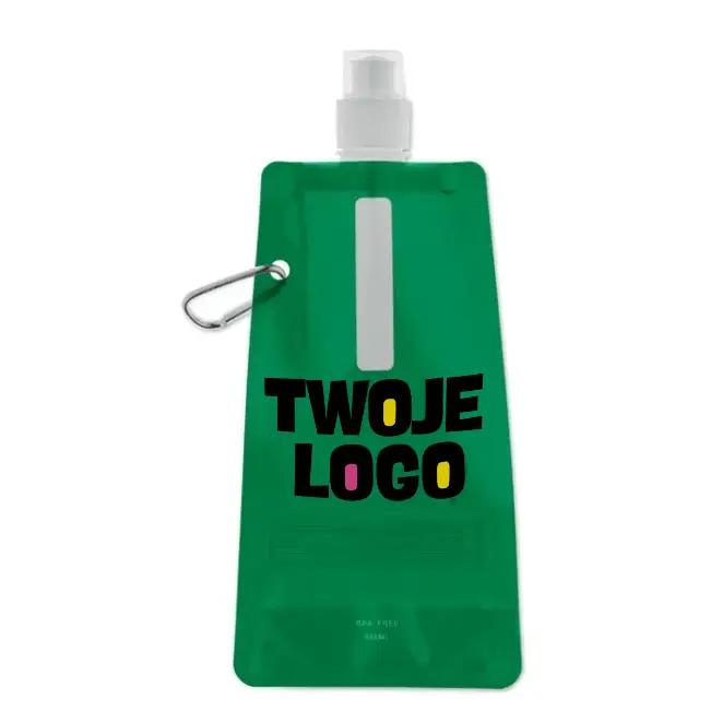 Składany plastikowy pojemnik na wodę z PET (nie zawiera BPA), z aluminiowym karabinkiem. Pojemność 480ml. Szczelna.