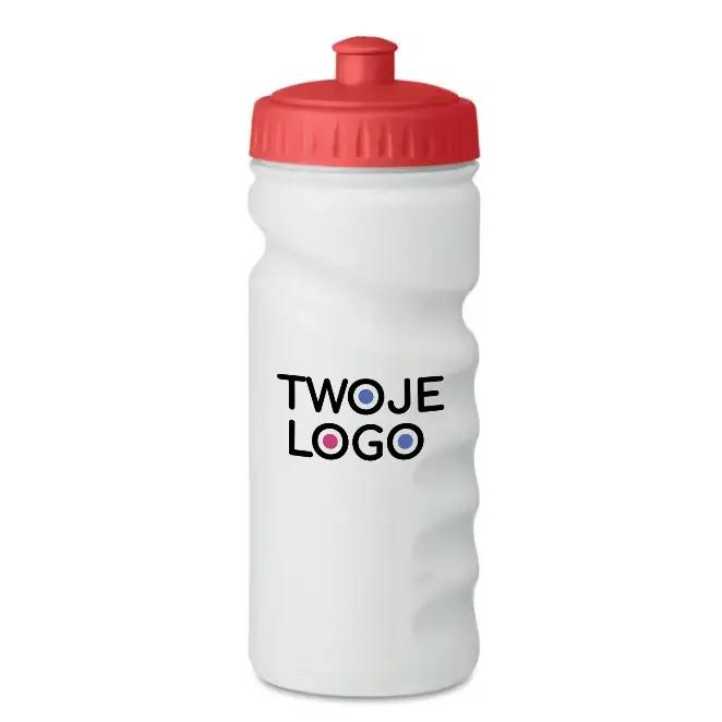 Sportowa butelka do picia z wygodnym uchwytem, z tworzywa PE, nie zawiera BPA. Pojemność: 500 ml. Szczelna.