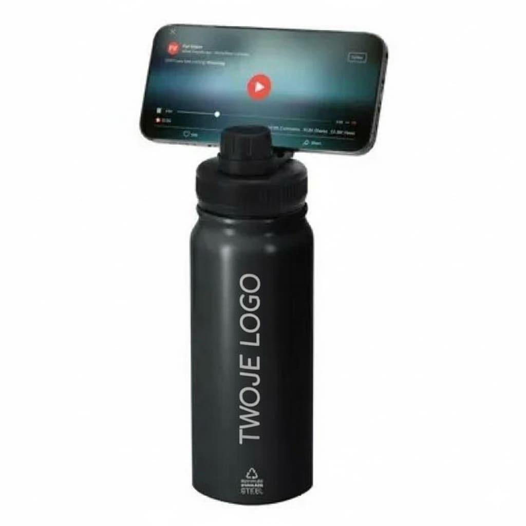 Butelka termiczna 600 ml ze stali nierdzewnej z recyklingu, magnetyczny obrotowy stojak na telefon z nadrukiem logo