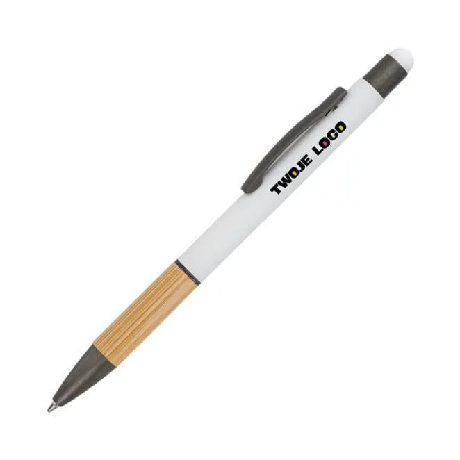 Długopis z bambusowym akcentem, wyposażony w końcówkę do ekranów dotykowych. Idealny do pisania i nawigacji na urządzeniach mobilnych. Wkład w kolorze niebieskim.