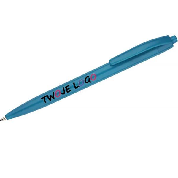 Plastikowy długopis BASIC z niebieskim wkładem. Logo nadrukujemy na korpusie.