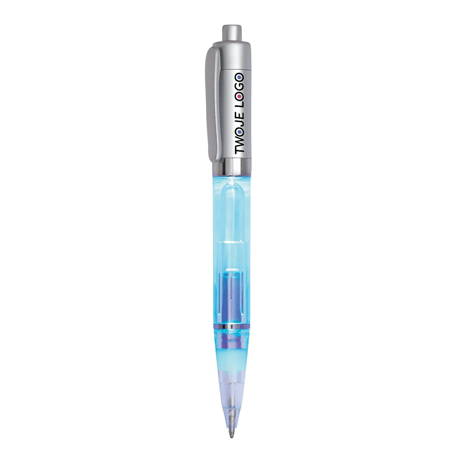 Długopis LUXOGRAPH LIGHT z małym podświetleniem LED aktywowanym przez mechanizm sprężynowy. Długopis z tworzywa sztucznego, świeci w kolorze czerwonym, tusz niebieski.