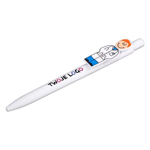 Długopis ze skuwką przedstawiającą postać lekarza. Wkład w kolorze niebieskim.