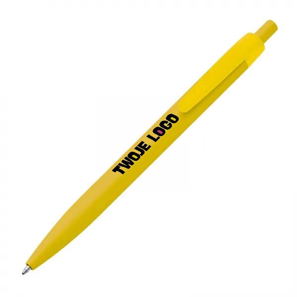 Długopis wykonany z plastkiu z wkładem piszącym na niebiesko.