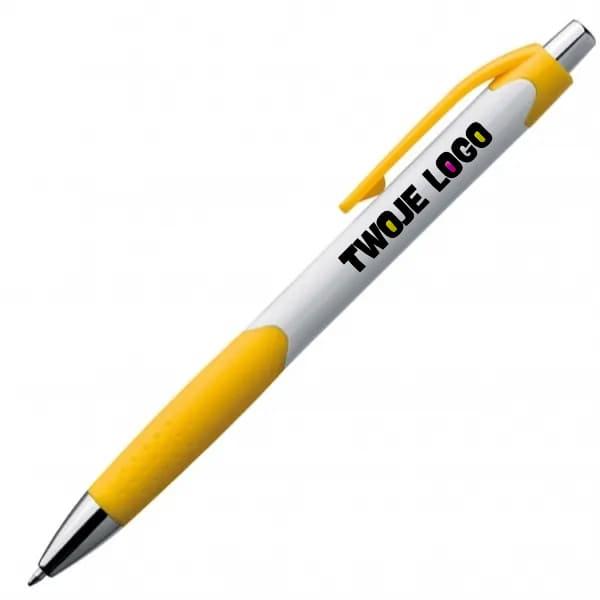 Automatyczny długopis MAO wykonany z plastiku. Dostępny w bogatej gamie kolorystycznej. Posiada niebieski wkład piszący.