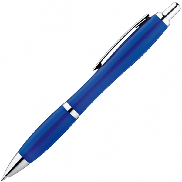 Długopis plastikowy wyposażony w system typu klik oraz niebieski wkład. Długopis z uchwytem dostępny jest w wielu wariantach kolorystycznych.
