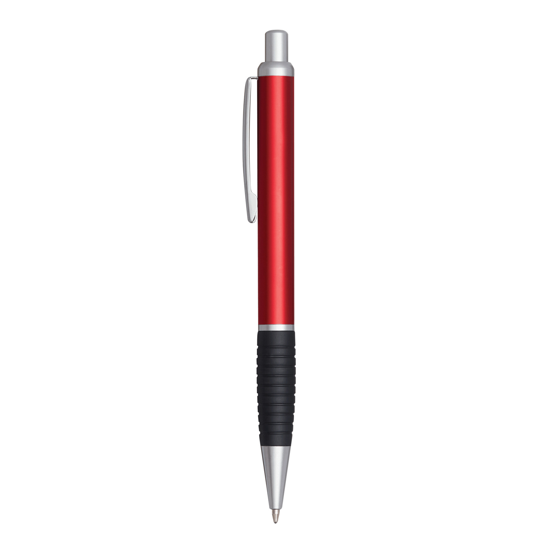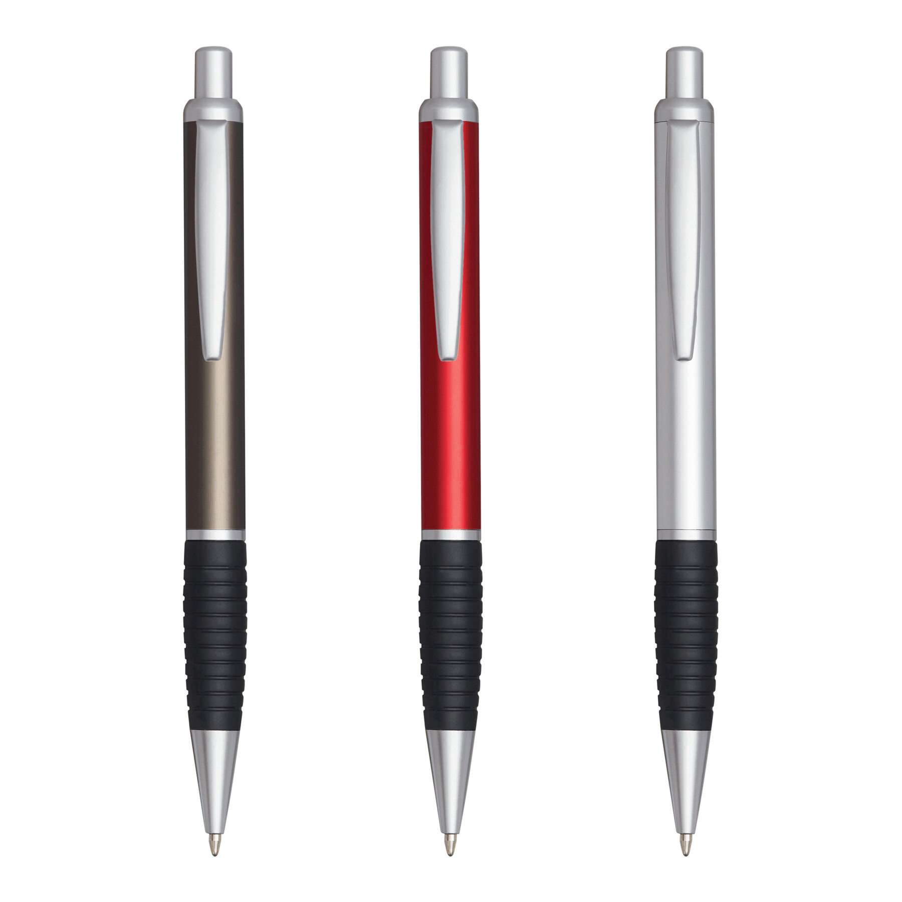 Długopis VANCOUVER z gumowym uchwytem i metalizowanymi wykończeniami, duży wkład, niebieski tusz.