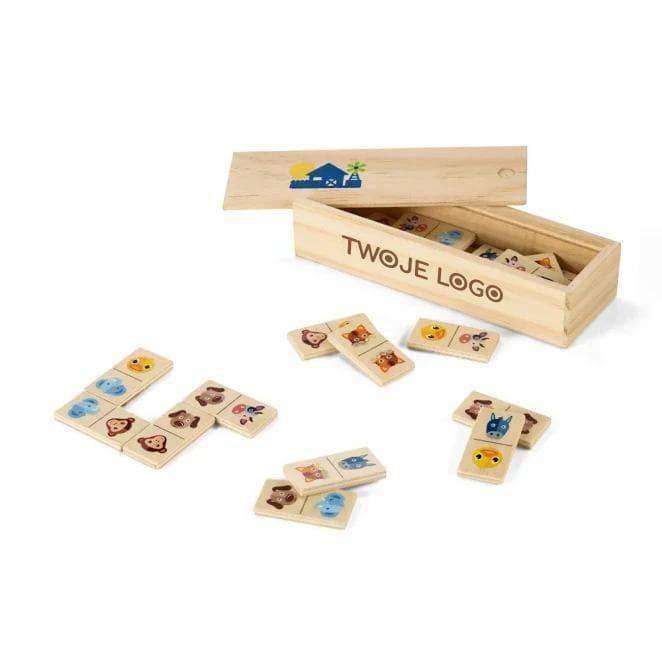 Drewniana gra domino dla dzieci z figurami zwierząt. Dostarczana w drewnianym pudełku z możliwością personalizacji. Ponieważ produkt jest wykonany z naturalnych materiałów, kolor produktu oraz wynik drukowania mogą się różnić w zależności od produktu. 147 x 50 x 30 mm