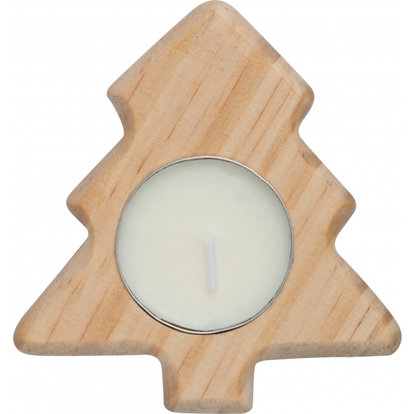 Drewniana podstawka w kształcie choinki ze świeczką tealight.