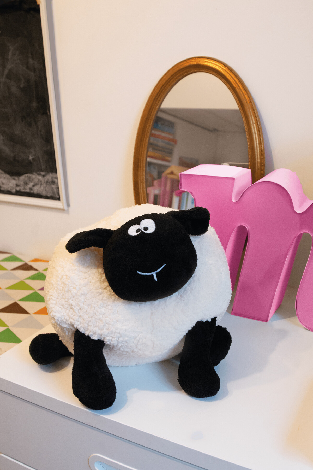 Duża pluszowa owca SAMIRA z miękkim futerkiem i serduszkiem do nadruku. Wyprodukowana w Europie.