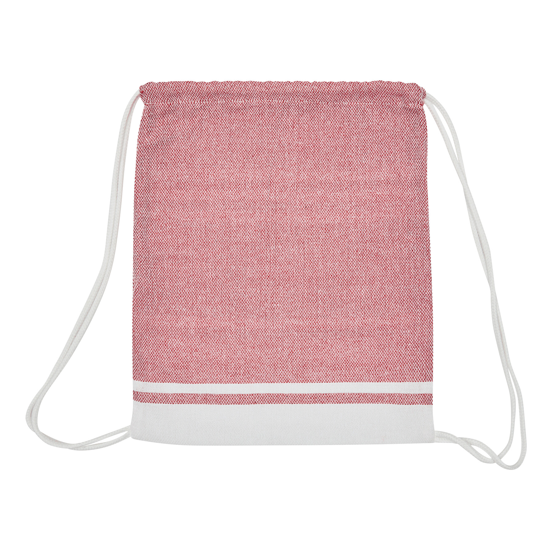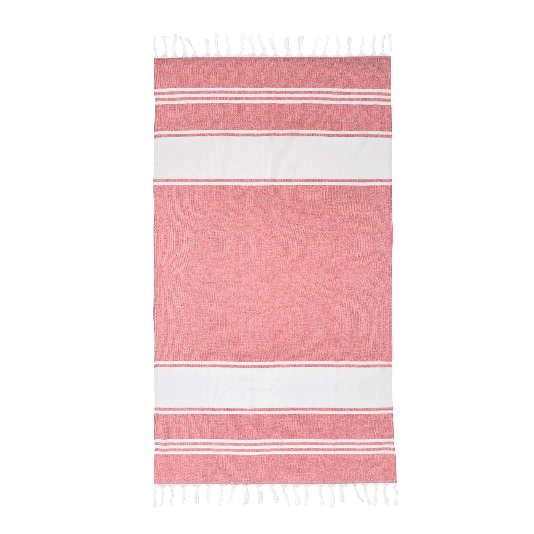 Duży ręcznik plażowy lub do sauny SUN & STEAM. To duży ręcznik z białymi paskami i frędzlami. Zapakowany jest w dopasowaną kolorystycznie torbę ze ściągaczem.
