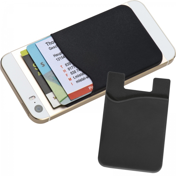 Samoprzylepne silikonowe etui na wizytówki i karty, przeznaczone do umieszczenia z tyłu smartfona.