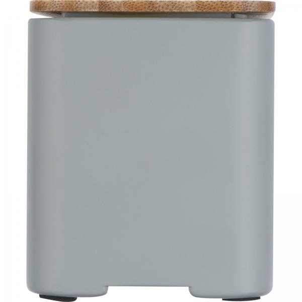 Głośnik Bluetooth z cementu wapiennego. W bambusowej części znajduje się zintegrowana ładowarka indukcyjna.