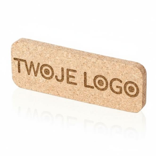 Korkowa przypinka z logo firmy