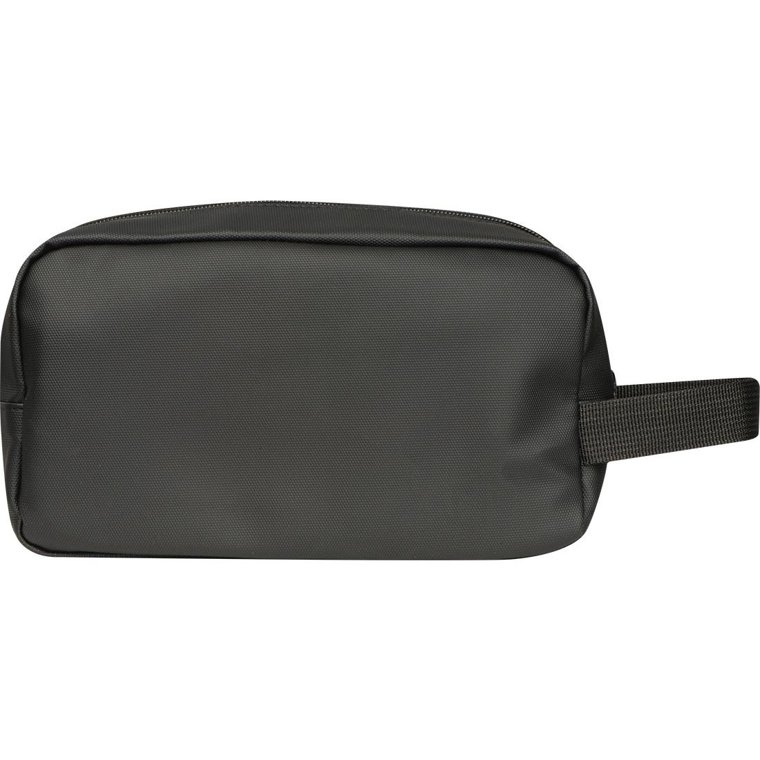 Kosmetyczka z PU, z dwoma kieszeniami zamykanymi na zamek oraz rączką do przenoszenia.