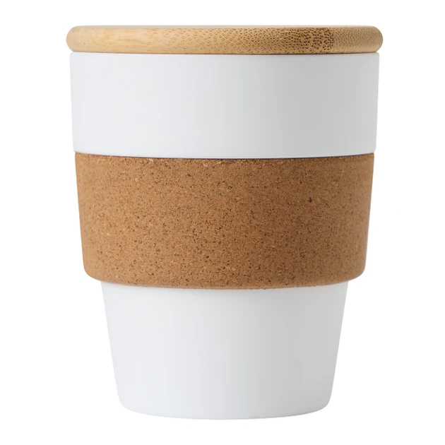 Kubek podróżny TRAVEL GRIP: wykonany jest z plastiku. Posiada korkową powierzchnia ułatwiającą trzymanie, zdejmowaną bambusową pokrywkę z silikonową uszczelką. Pojemność kubka to ok. 350 ml.