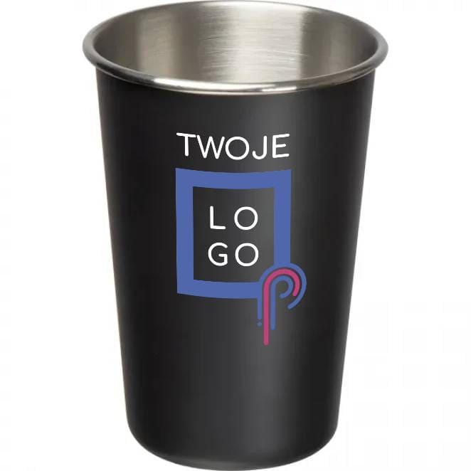 Duży kubek do picia wykonany ze stali nierdzewnej o pojemności 480 ml.