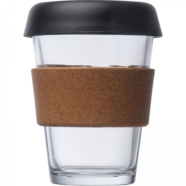 Kubek wykonany ze szkła borokrzemowego, posiada plastikowe wieczko oraz korkowy rękaw chroniący przed poparzeniem. Pojemność 350 ml.