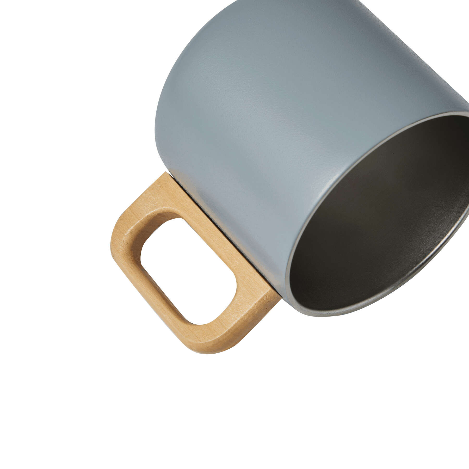 Kubek ze stali nierdzewnej RUSTIC TRIP, z podwójną izolacją. Posiada drewniany uchwyt, kolorową matowa powłokę proszkową na zewnątrz i srebrną wewnątrz. Pojemność kubka to ok. 350 ml.