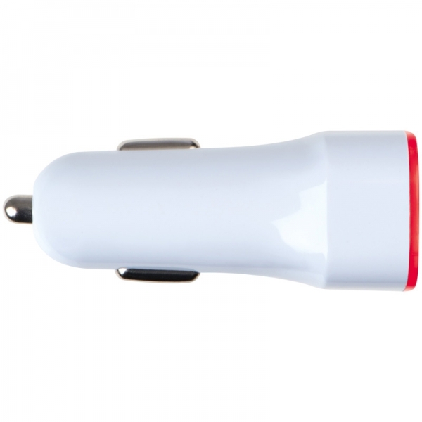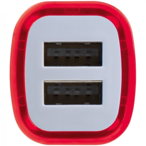 Ładowarka samochodowa USB z dwoma wejściami USB, podłączana do zapalniczki samochodowej. Wykonana z metalu i plastiku. Dostępna w kilku kolorach.