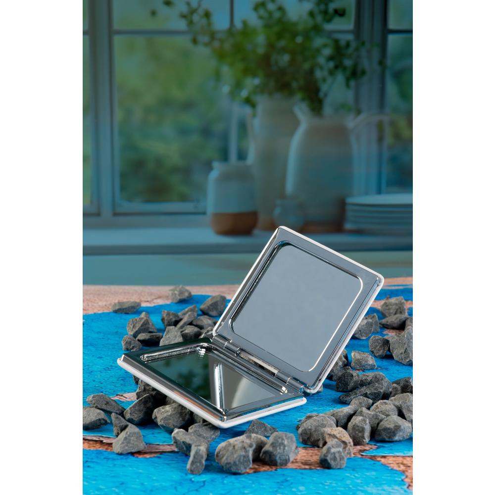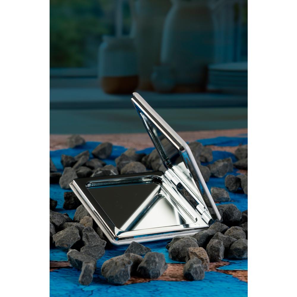 Lusterko standardowe i powiększające, nietłukące się, wykonane z polerowanego metalu. Z wierzchu wykończone na biało.