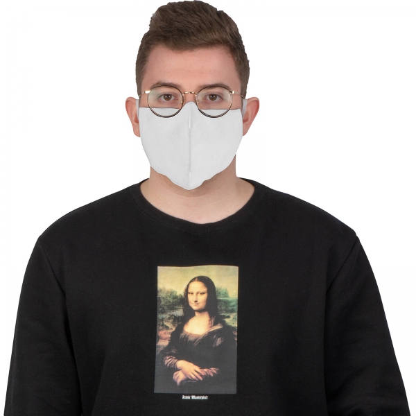 Bawełniana maseczka, 2-warstwowa (warstwa zewnętrzna o gramaturze 225g/m², wewnętrzna - 145g/m²). Wygodne mocowanie na elastyczne gumki za uszy. Posiada certyfikat OEKO-TEX®.