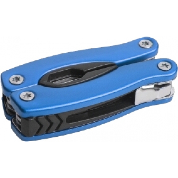 Multitool posiada 13 narzędzi, m.in.: kombinerki, pilnik, śrubokręt płaski i Philips, nóż, piłka, otwieracz do butelek i konserw. Narzędzie zapakowane w neoprenowy pokrowiec.