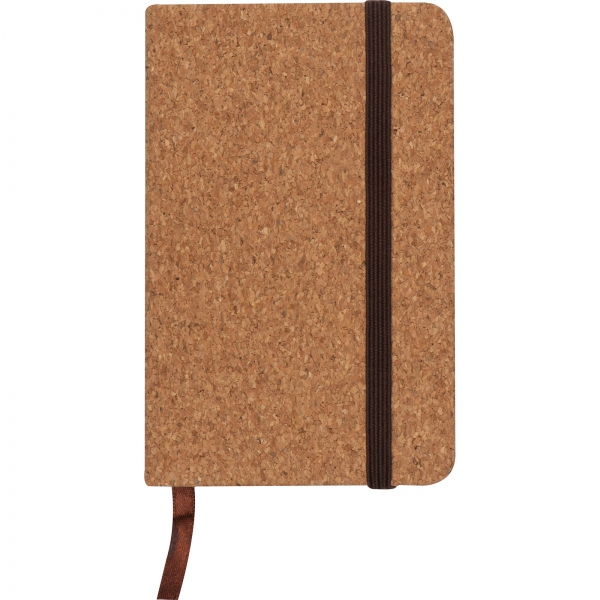 Notes format A6 w linie (160 stron) z okładką wykonaną z korka oraz zakładką i gumką do zamykania.