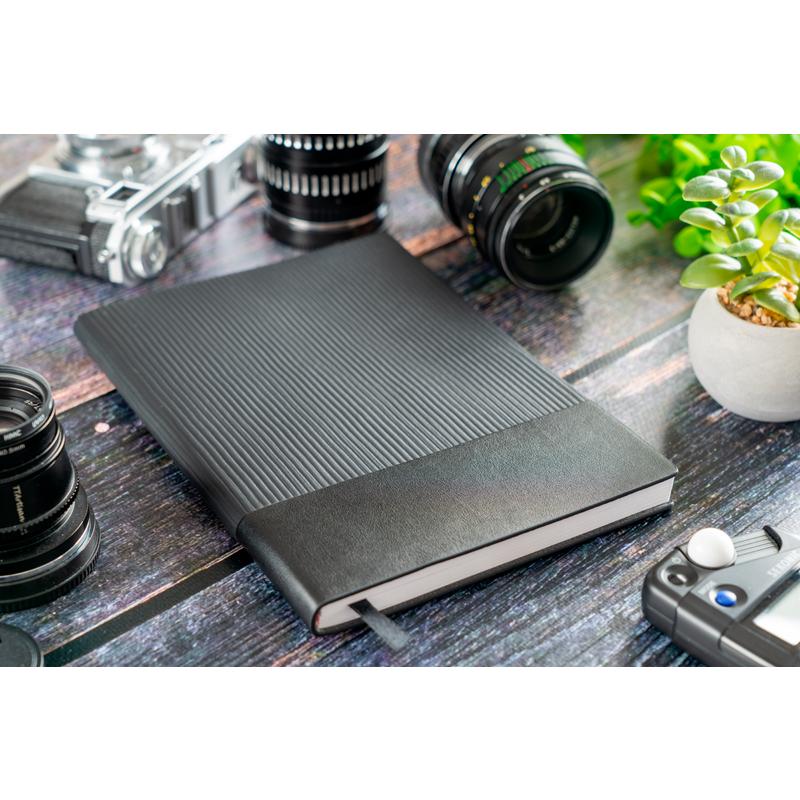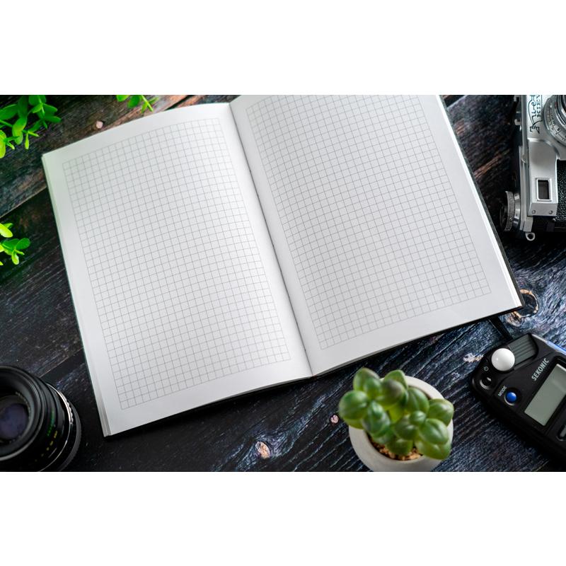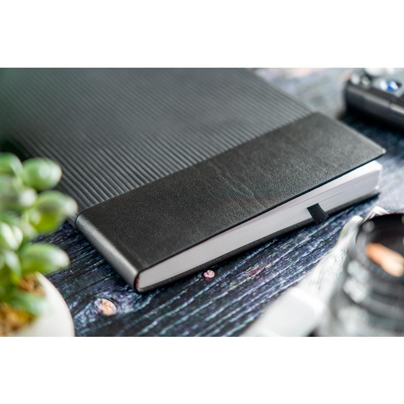 Notes A5 z 200 stronami w kratkę w miękkiej oprawie PU z podwójną tasiemką pełniącą funkcję zakładki.