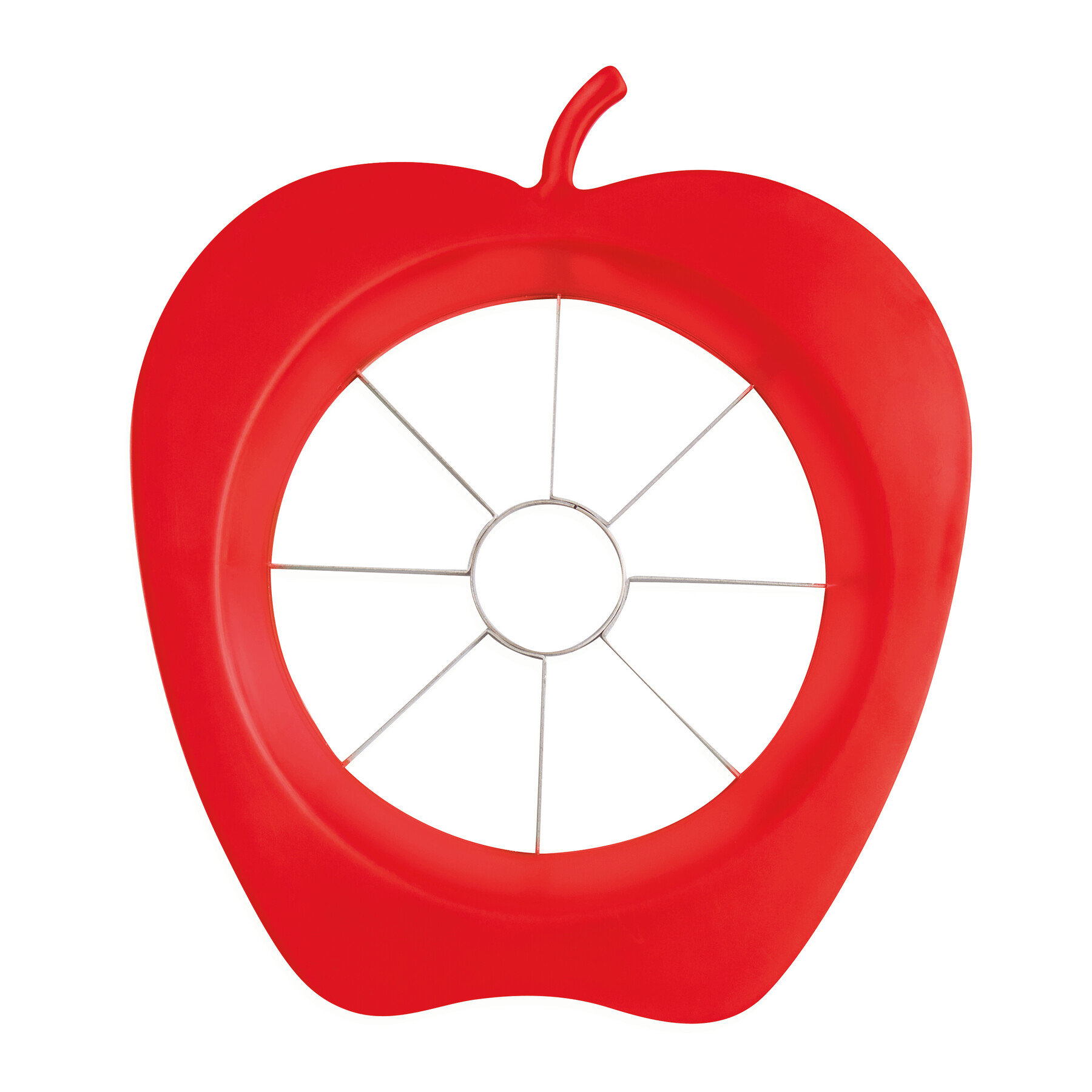 Nóż do jabłek SPLIT z plastikowym uchwytem w kształcie jabłka i ostrzami ze stali nierdzewnej.