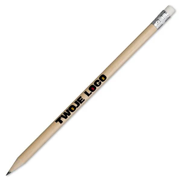 Okrągły, zaostrzony ołówek HB z drewna topolowego w naturalnym kolorze. Pokryty bezbarwnym lakierem. Ołówek posiada gumkę.