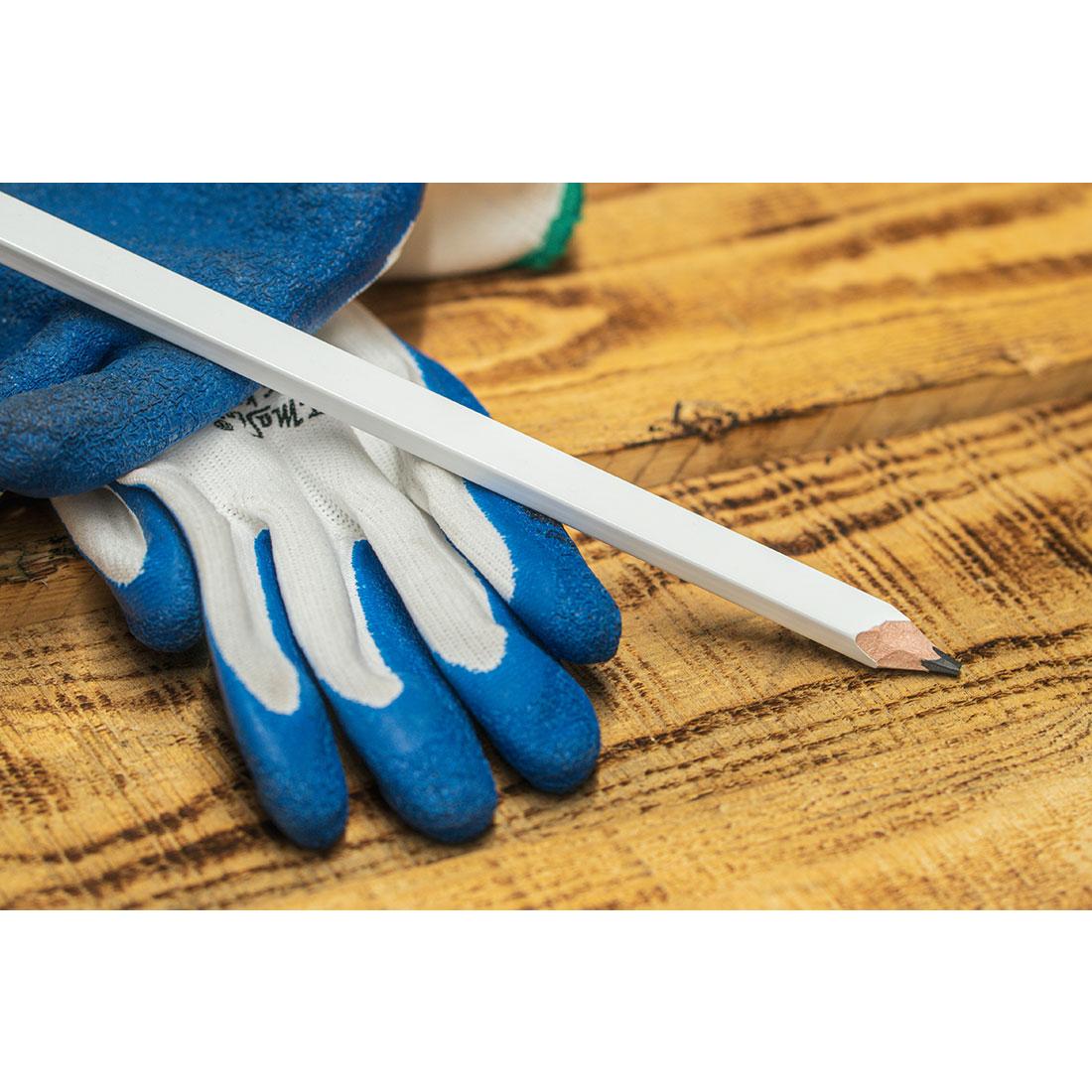 Drewniany, prostokątny ołówek stolarski z grafitowym wkładem HB. Nie jest zatemperowany.