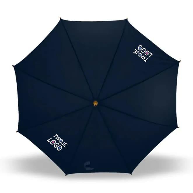 Parasol automatyczny 23", posiada 8 paneli oraz zapięcie na rzep, drewniany trzon i rączka, produkt wykonany z poliestru 190T