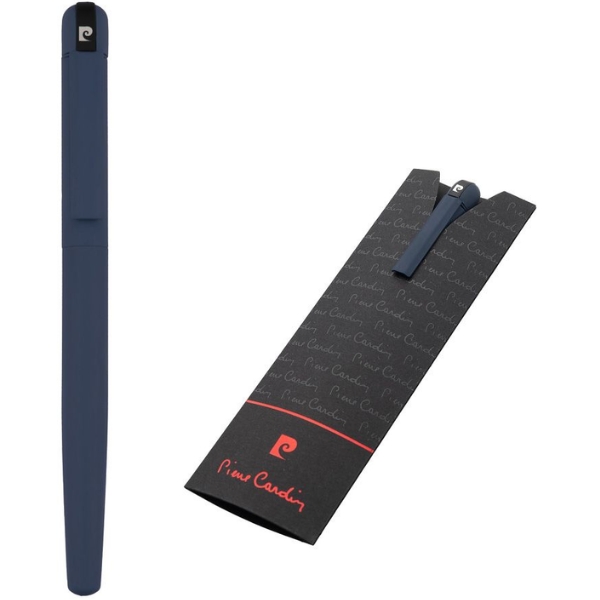 Pióro kulkowe z powierzchnią soft touch i dużym metalowym klipsem. Pióro zawiera nabój Schneider w kolorze niebieskim, z końcówką 0,6 mm. Pióro zapakowane w eleganckie etui, posiada certyfiat autentyczności Pierre Cardin.
