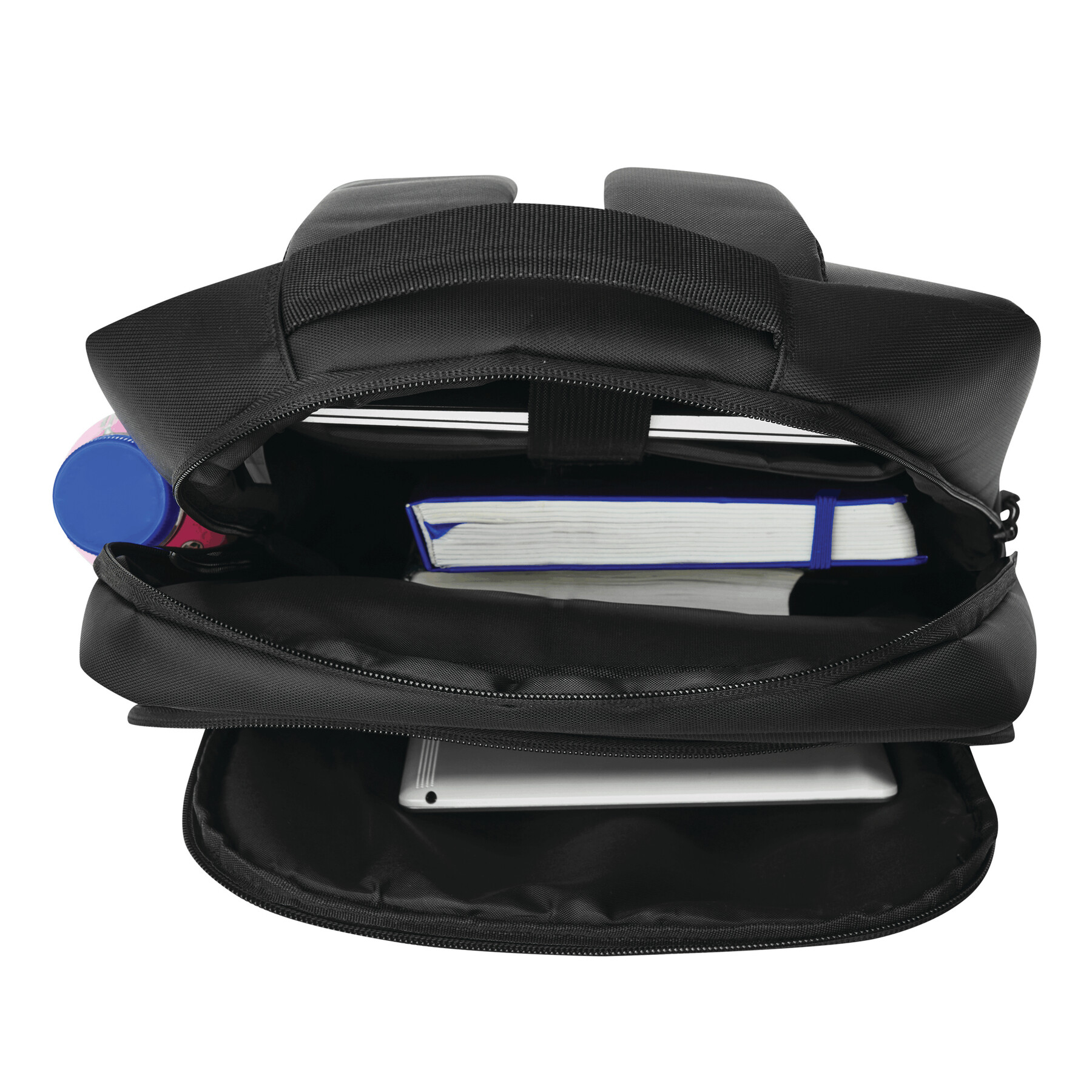 Plecak PRINCETON z funcjonalnym paskiem do założenia na walizkę. Ma 1 przednią komorę na suwak z organizerem (2 wewnętrzne kieszenie i 2 uchwyty na długopis) oraz 1 poziomą na suwak z odblaskowymi elementami. Posiada także boczną kieszeń na suwak i komorę główną zapinaną na suwak z wyściełaną przegrodą na laptopa lub tablet. Ma miękki uchwyt do przenoszenia i ergonomicznie ukształtowane wygodne szelki i wyściełane plecy.