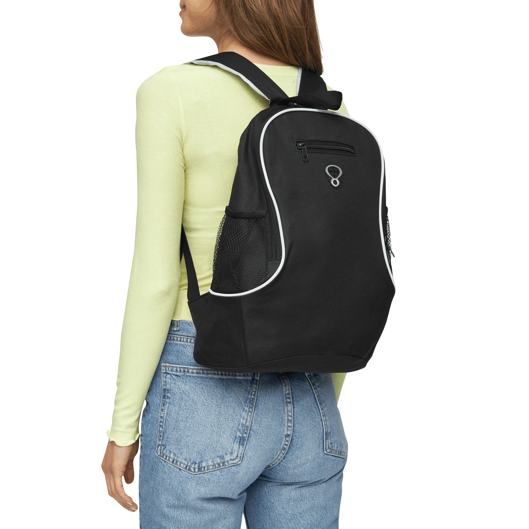 Plecak TEC, kieszeń przednia z otworem na słuchawki, komora główna na suwak, pasek do przenoszenia, 2 siatkowe kieszenie po bokach, usztywniane ramiączka.