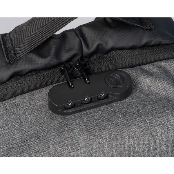 Usztywniany plecak wykonany z poliestru 600D, z dedykowaną przegrodą na laptopa i szyfrowanym zamkiem.