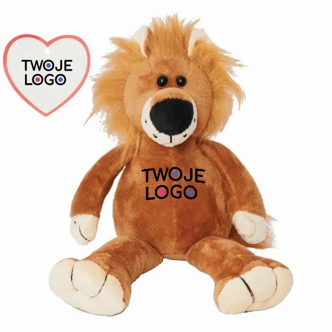 Pluszowy lew FETZY z miękkim futerkiem i sercem do nadruku.