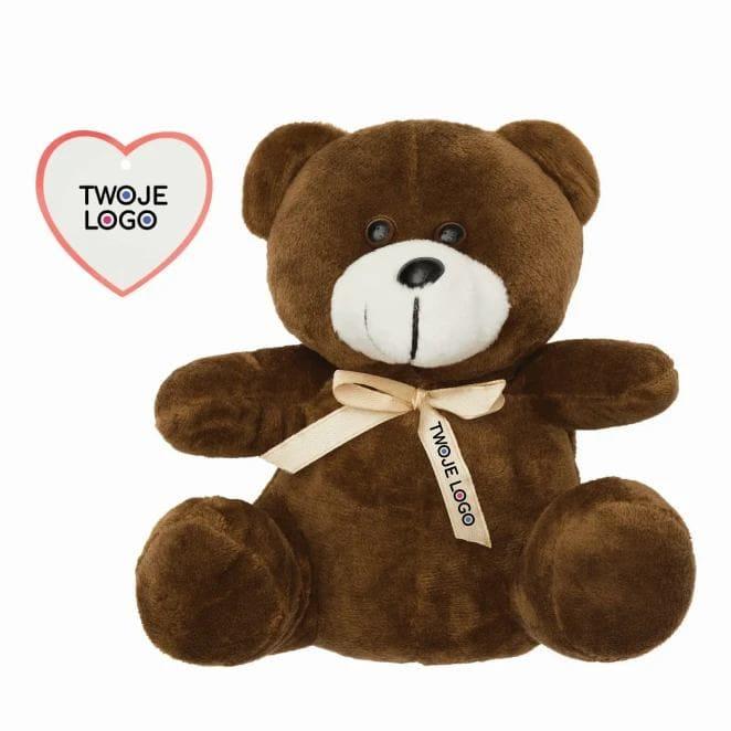 Pluszowy miś RUBEN z miękkim futerkiem i kokardą, w pozycji siedzącej.