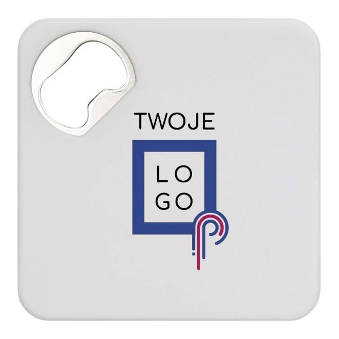 Podkładka pod szklankę TOGETHER wyposażona w otwieracz do butelek, antypoślizgową powłokę na spodzie, z dużą powierzchnią przeznaczoną na nadruk.