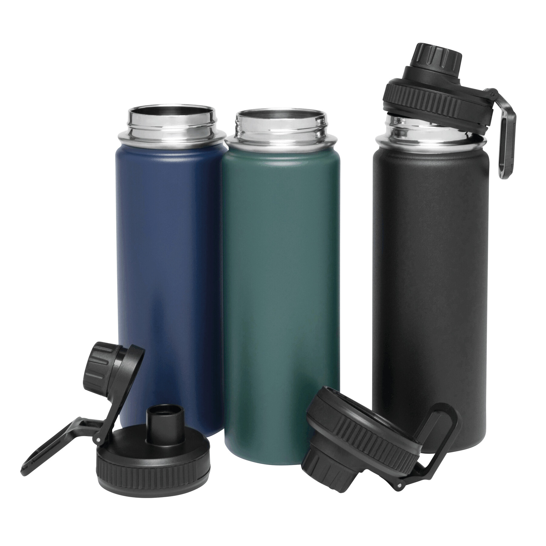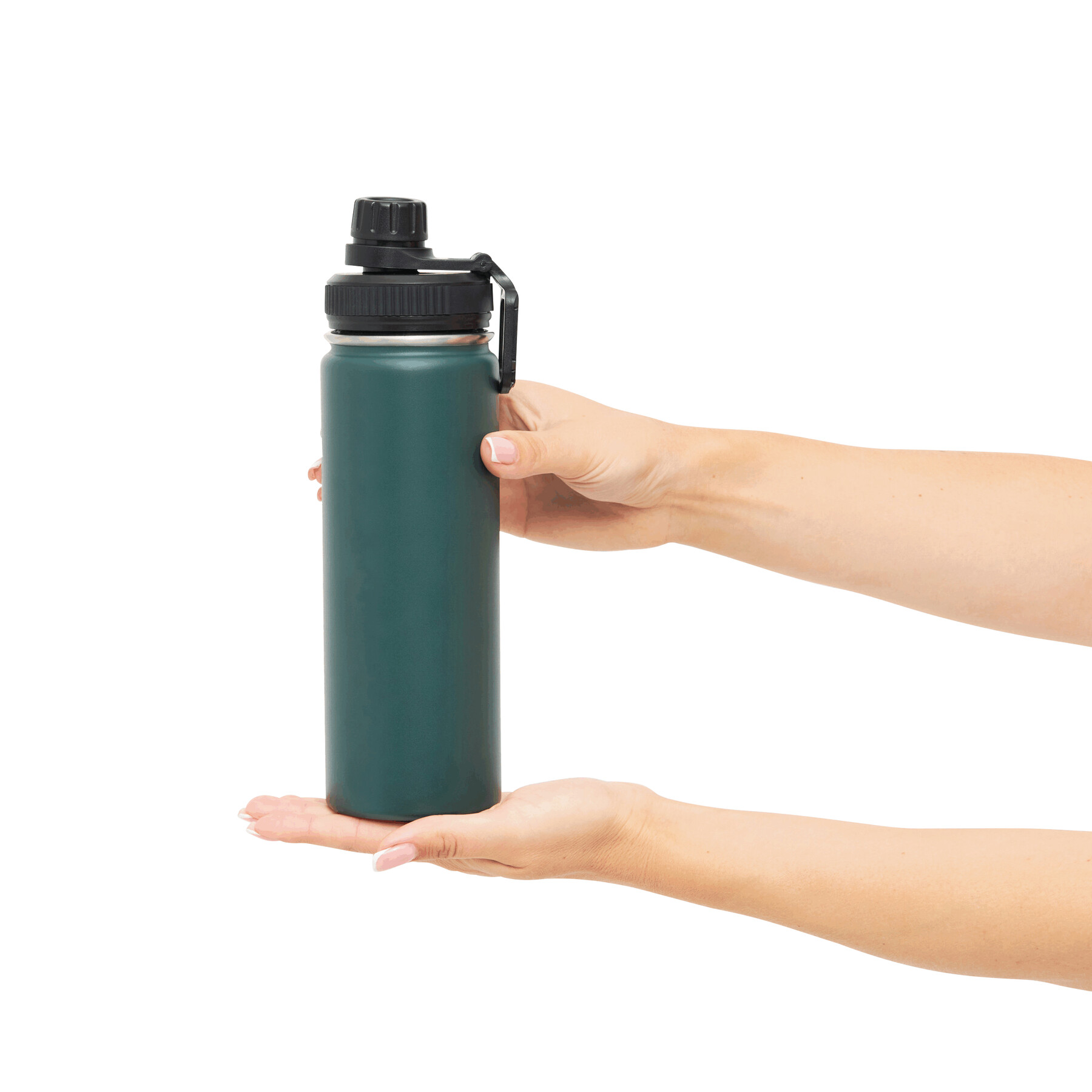 Próżniowa butelka do picia ARMY STYLE, dwuścienna: wewnątrz i na zewnątrz wykonana ze stali nierdzewnej, czarna, szczelna zakrętka, pojemność ok. 600 ml, utrzymuje ciepło napoju przez ok. 8 godzin i zimno do 12 godzin.
