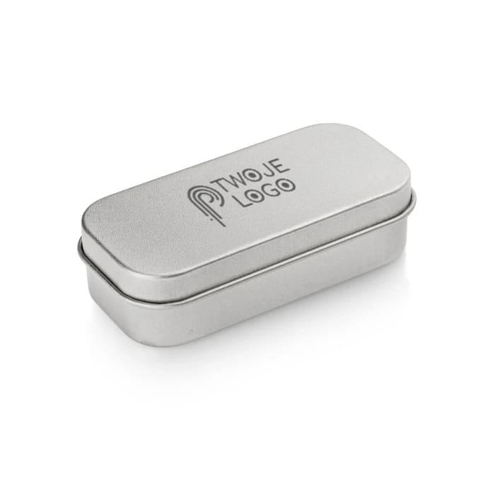 Puszka mała z wkładem na większą pamięć USB z nadrukiem na zamówienie