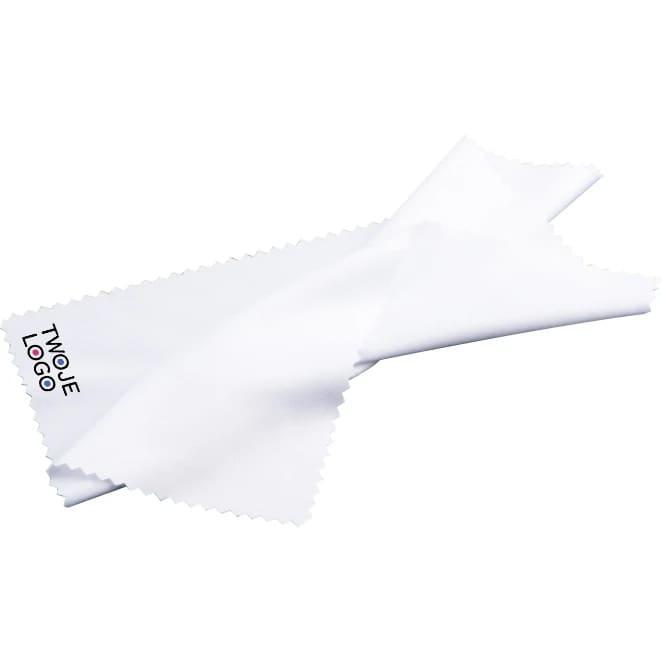 Ściereczka z mikrofibry, przeznaczona do czyszczenia okularów, powierzchni szklanych lub ekranów LCD. Ściereczna jest w kolorze białym, gramatura 170 g/m2.