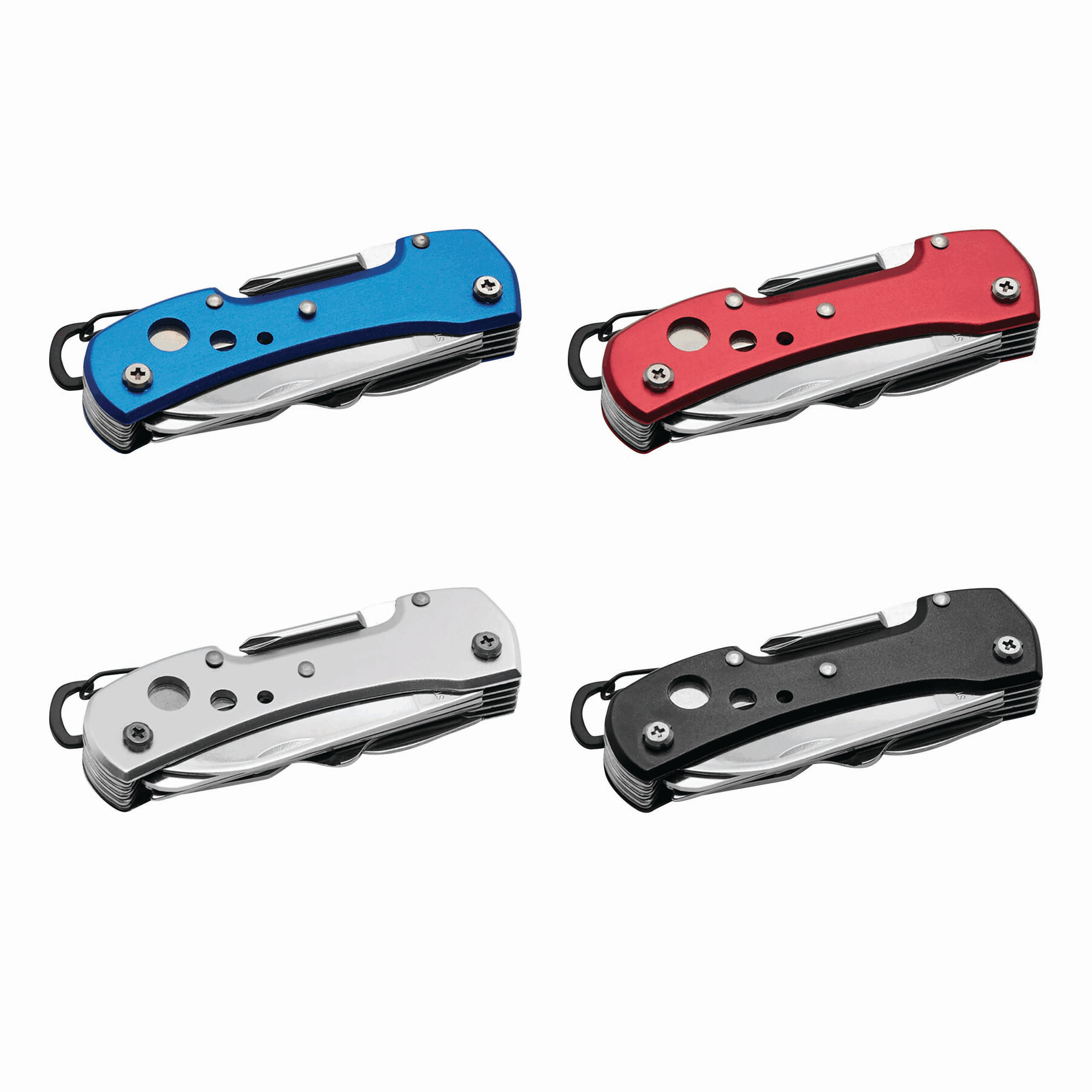 Scyzoryk STRONG HELPER składa się z 12 elementów: nożyka, piły, nożyczek, otwieracza do puszek, korkociągu, otwieracza do butelek, śrubokręta płaskiego, śrubokręta krzyżakowego, szpikulca-rozwiertaka, szydła, linijki, pilniczka oraz karabińczyka.