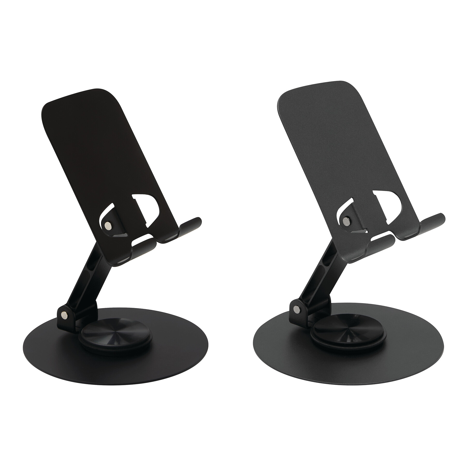Składany uchwyt na telefon DESK MASTER. Stalowy uchwyt o antypoślizgowej podstawie. Może być obracany o 360° i ma regulowany kąt nachylenia, co zwiększa wygodę użytkowania.